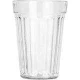 Качественный прозрачный стакан имеет дополнительно небольшие грани. Они находятся на широком расстоянии, поэтому стиль далек от классического граненого стакана. При этом бокал расширяется кверху, что делает посуду более изящной. Элегантный блеск материала добавляет шарма, напитки в стакане играют при свете ламп или солнечных лучей.